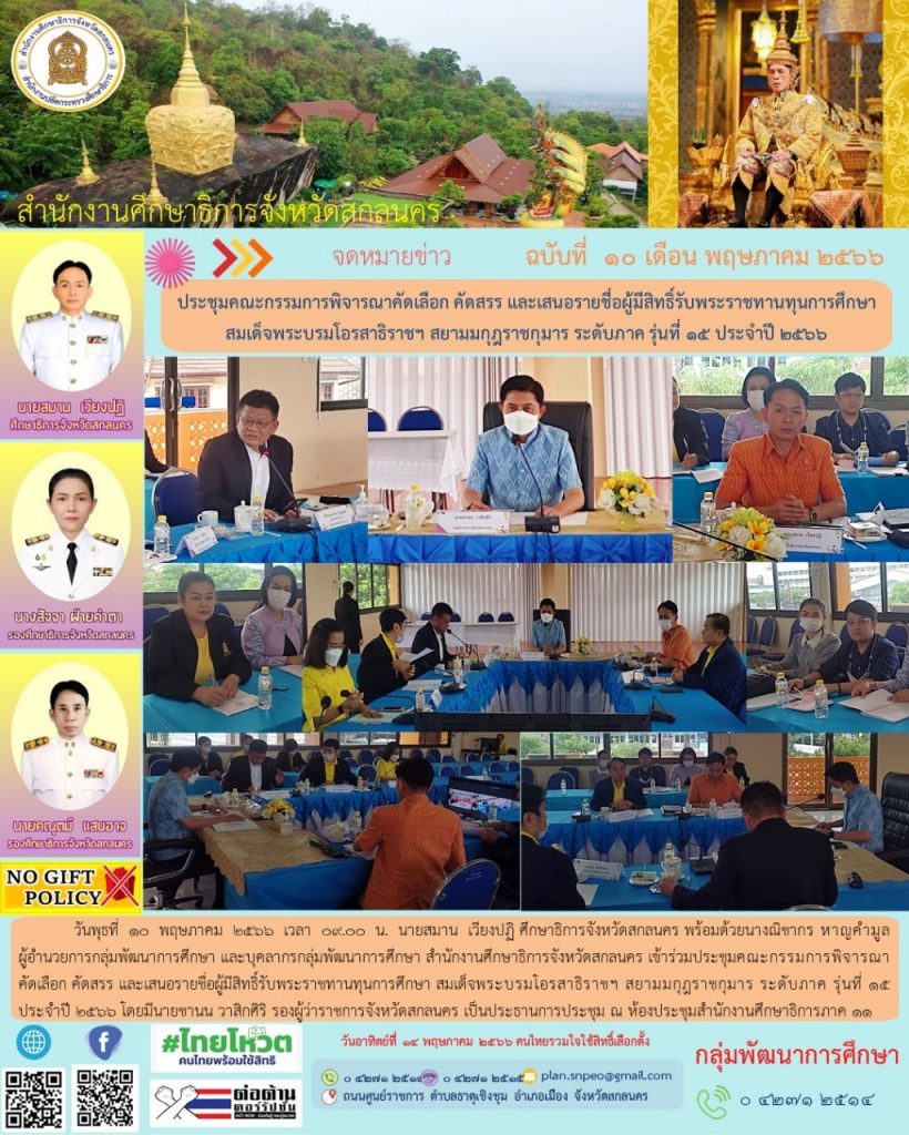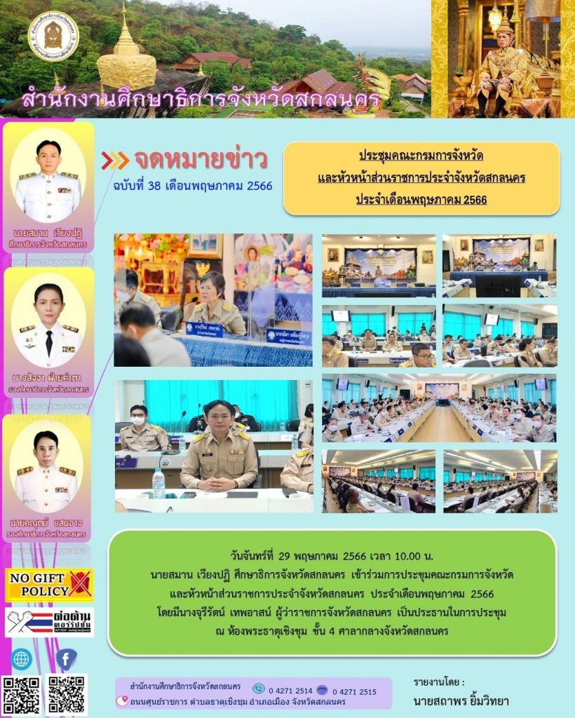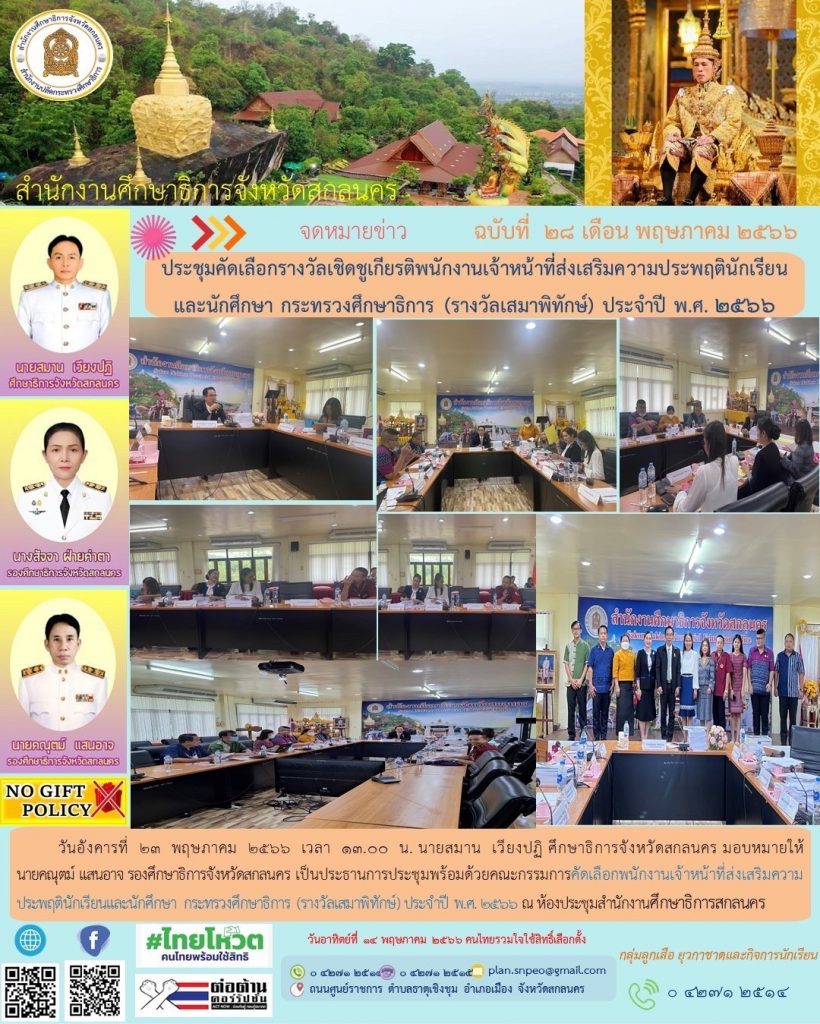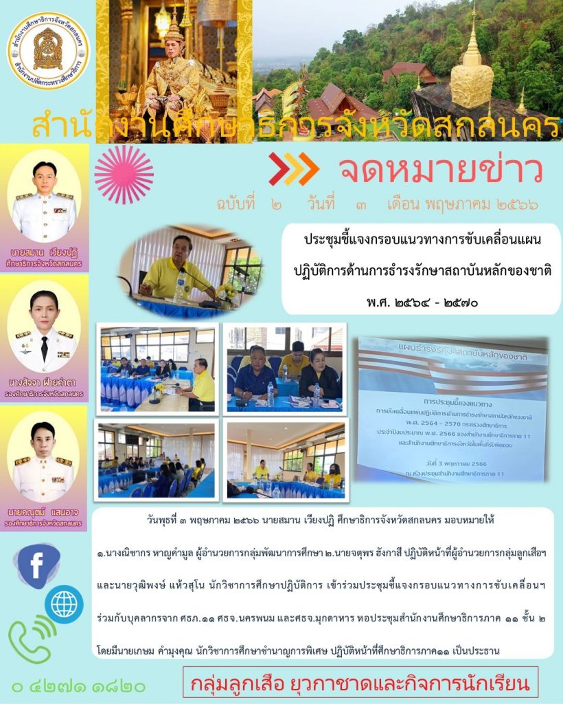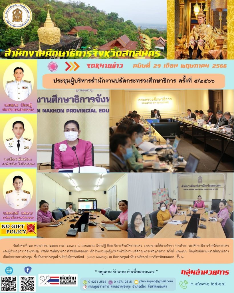 กำหนดการนัดหมายภารกิจศึกษาธิการจังหวัดสกลนคร