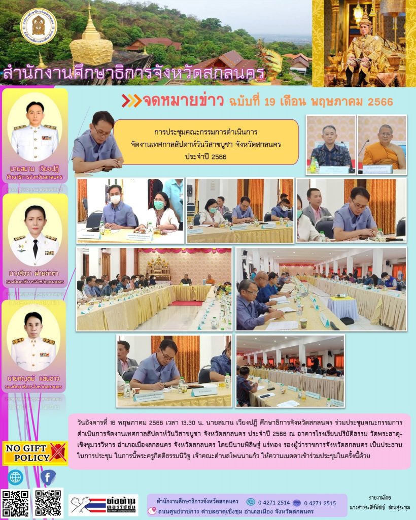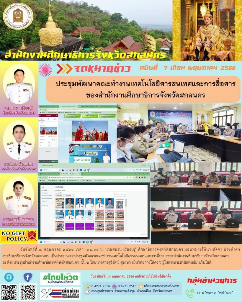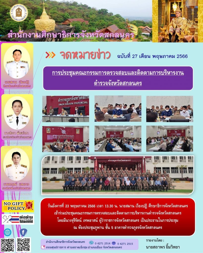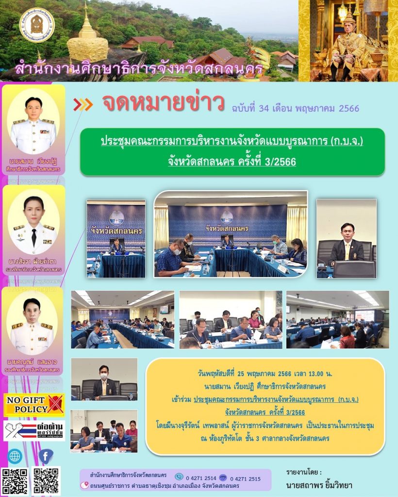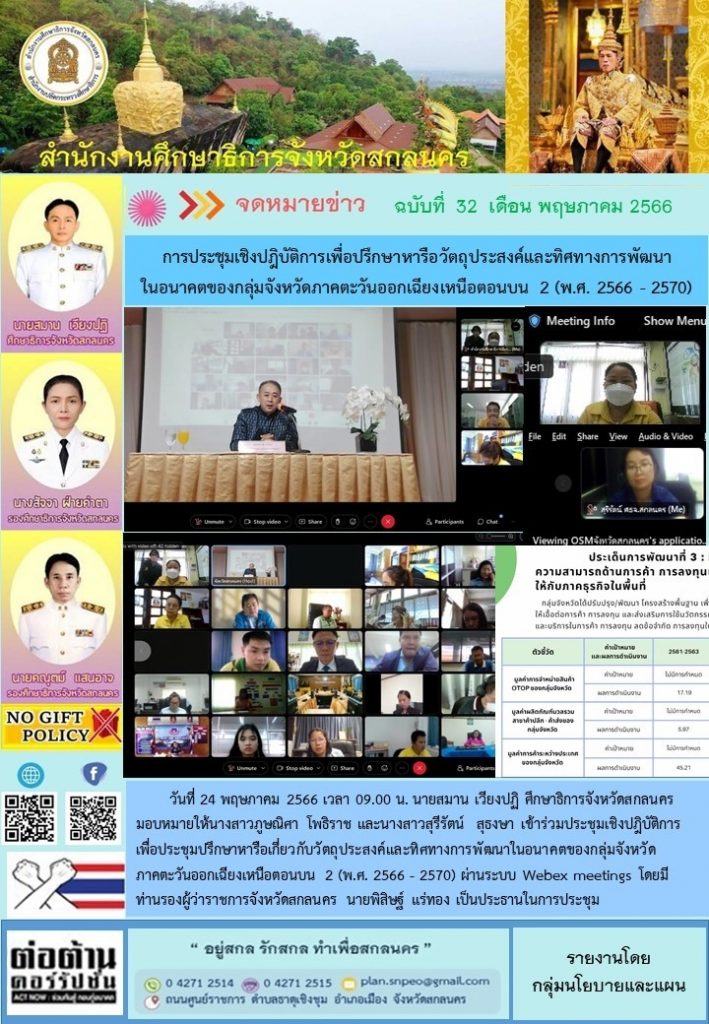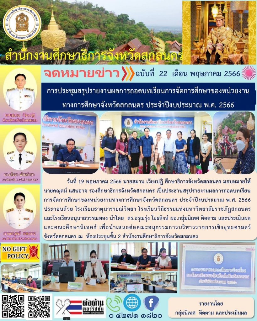 กำหนดการนัดหมายภารกิจศึกษาธิการจังหวัดสกลนคร