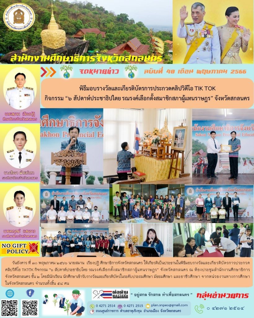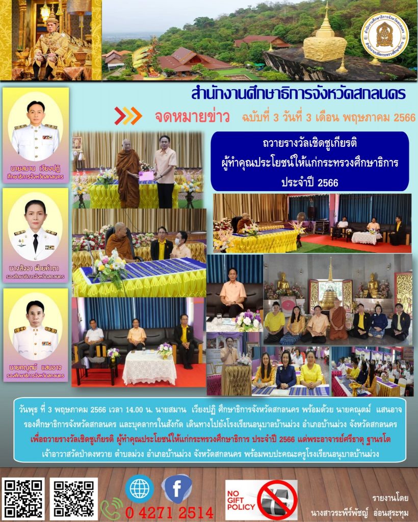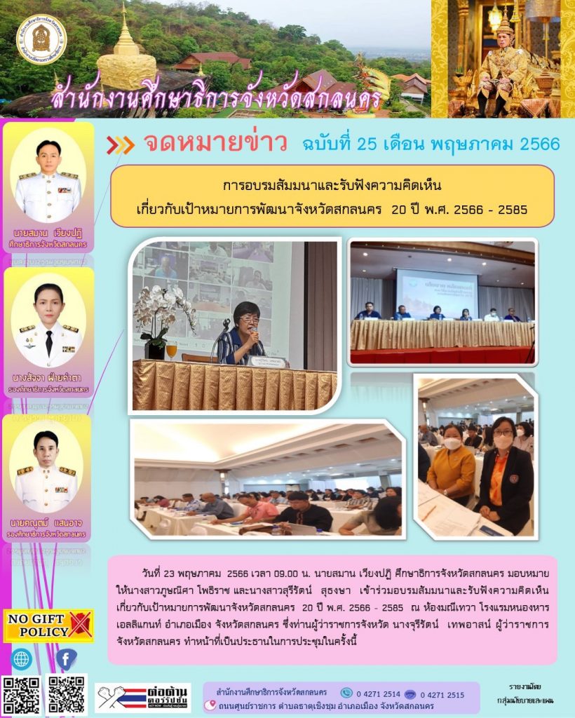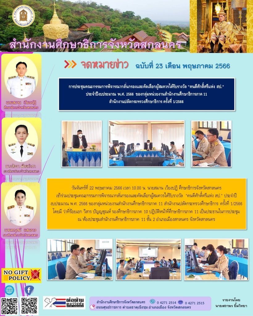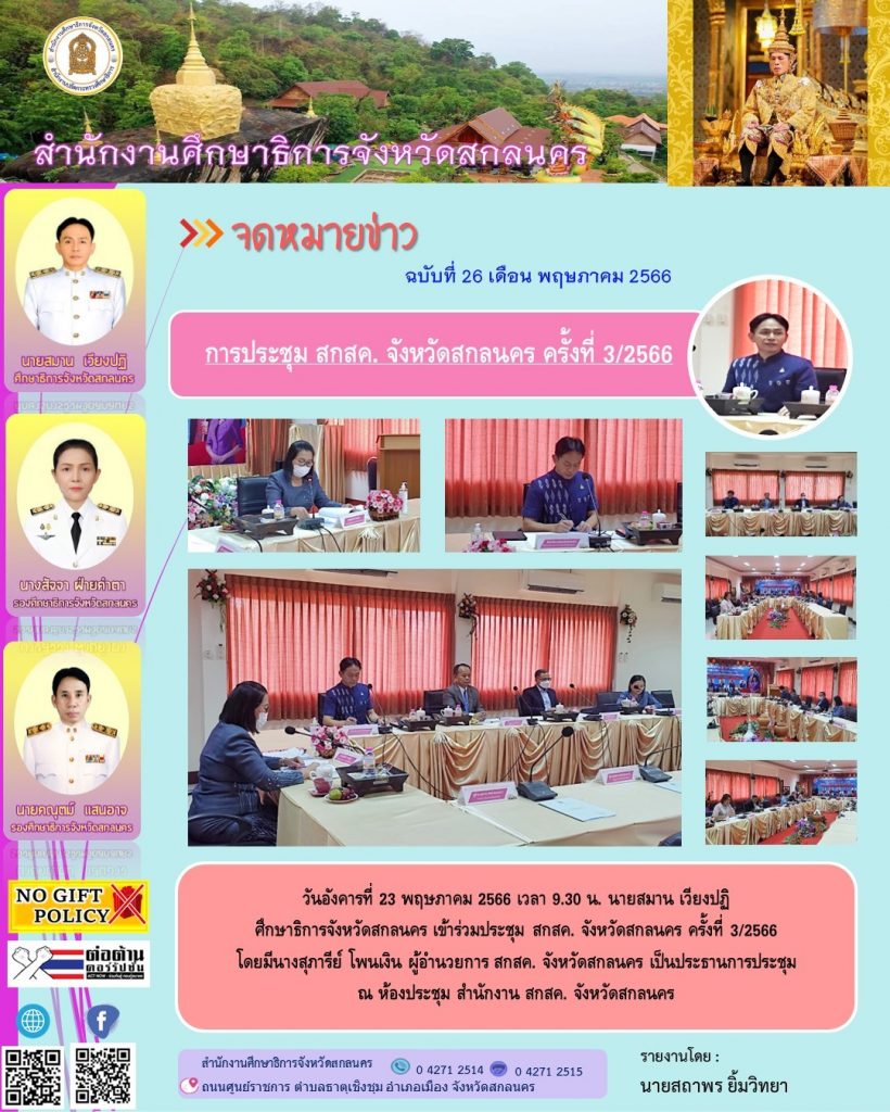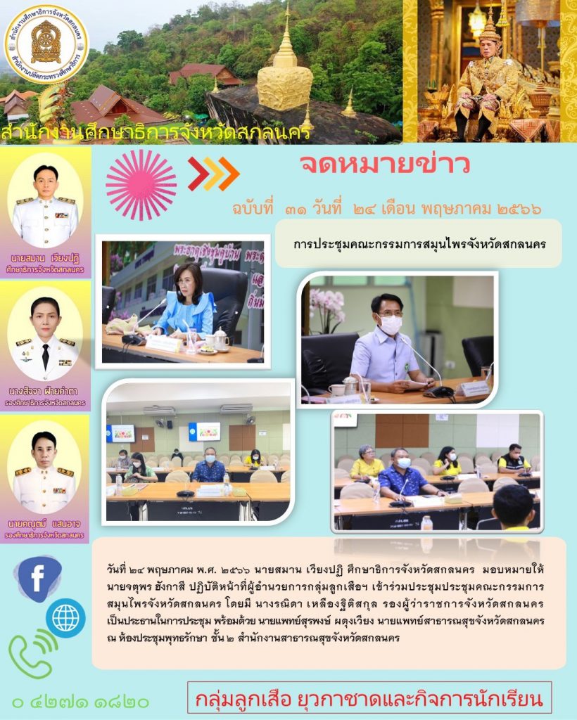 ยินดีต้อนรับสู่สำนักงานศึกษาธิการจังหวัดสกลนคร