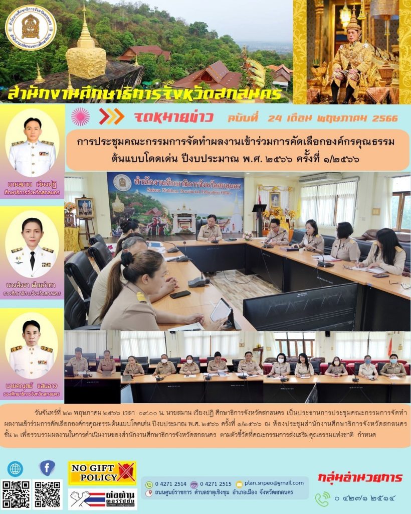 องค์กรคุณธรรม สำนักงานศึกษาธิการจังหวัดสกลนคร