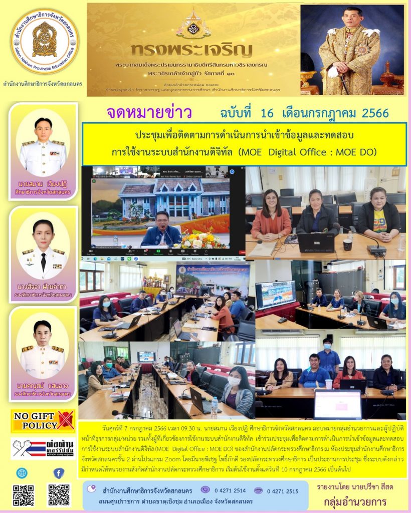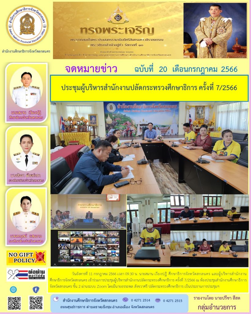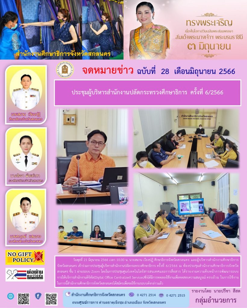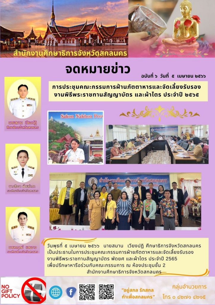 กำหนดการนัดหมายภารกิจศึกษาธิการจังหวัดสกลนคร