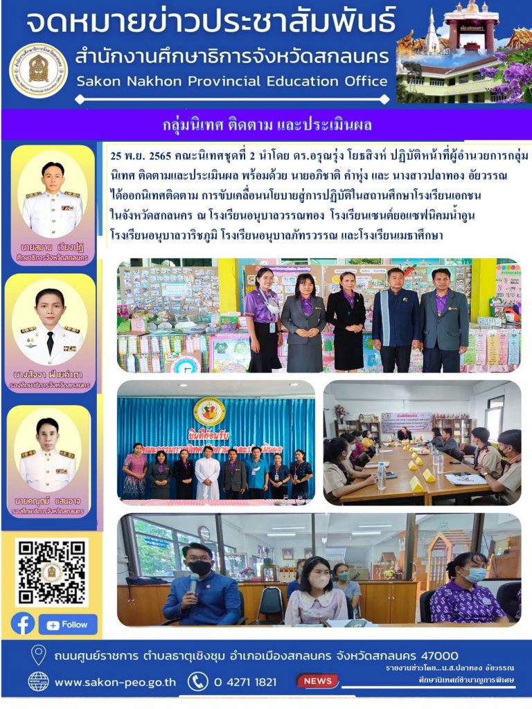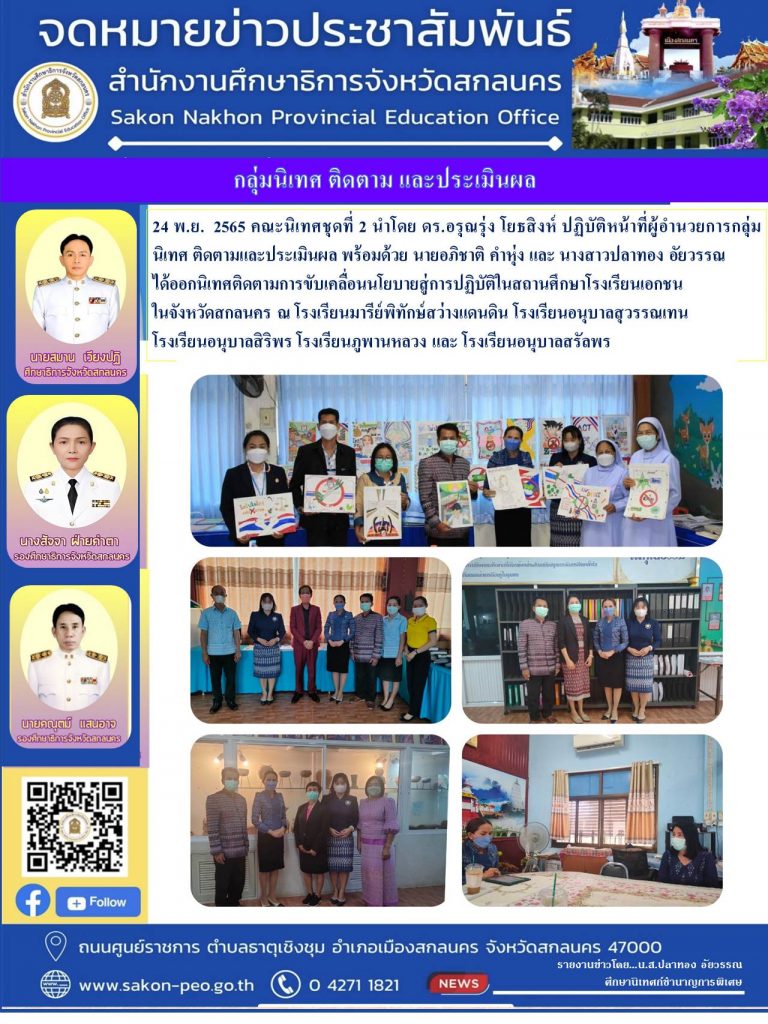กำหนดการนัดหมายภารกิจศึกษาธิการจังหวัดสกลนคร