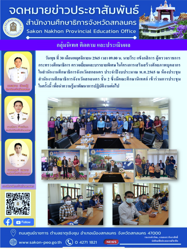 ยินดีต้อนรับสู่สำนักงานศึกษาธิการจังหวัดสกลนคร