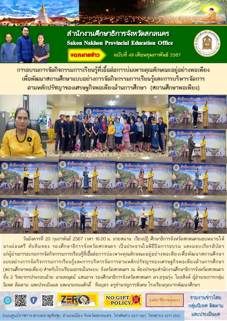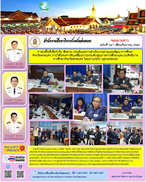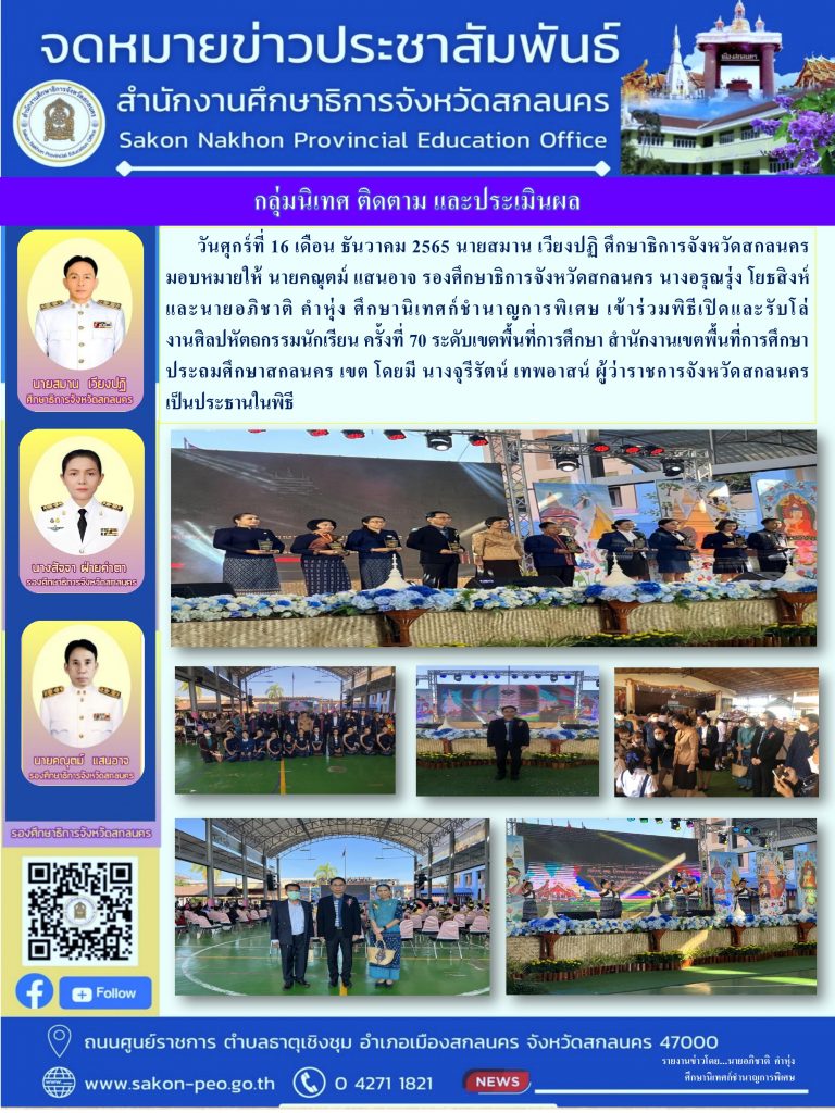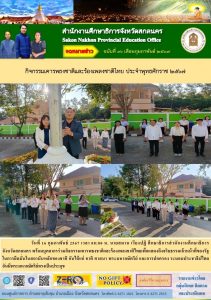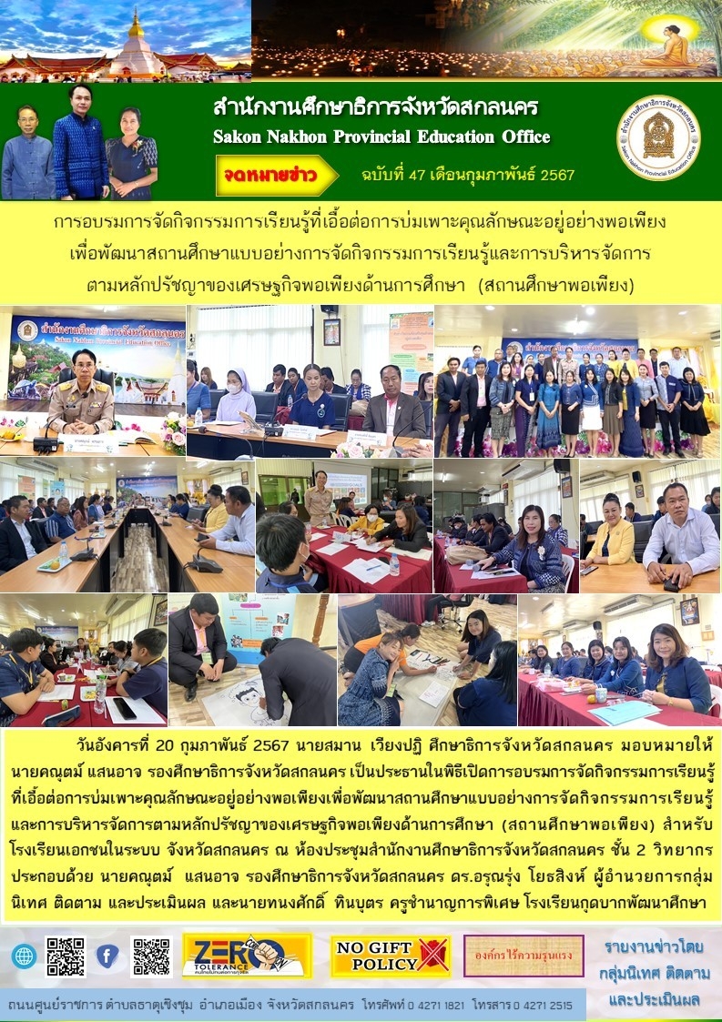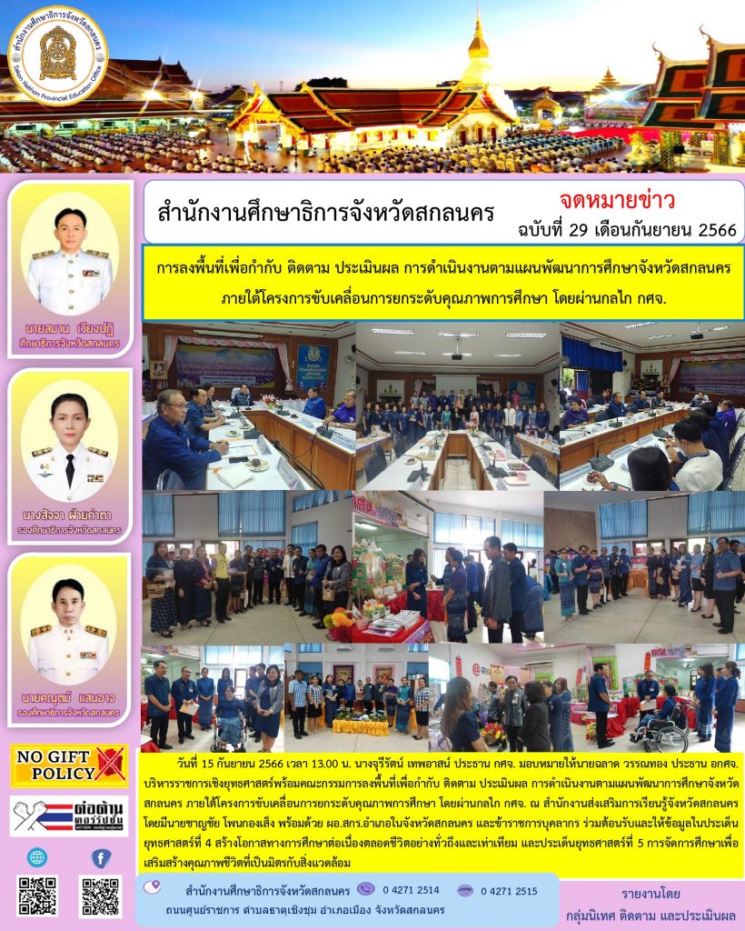 ภายใต้โครงการขับเคลื่อนการยกระดับคุณภาพการศึกษาและประสิทธิภาพการศึกษาจังหวัดสกลนคร โดยผ่านกลไก กศจ.สกลนคร