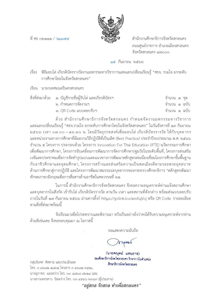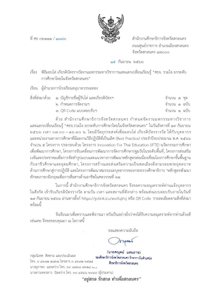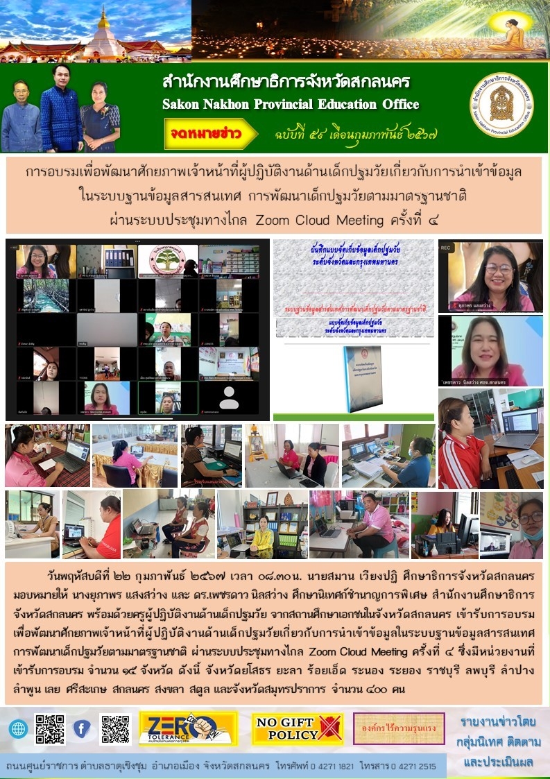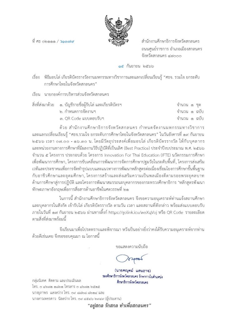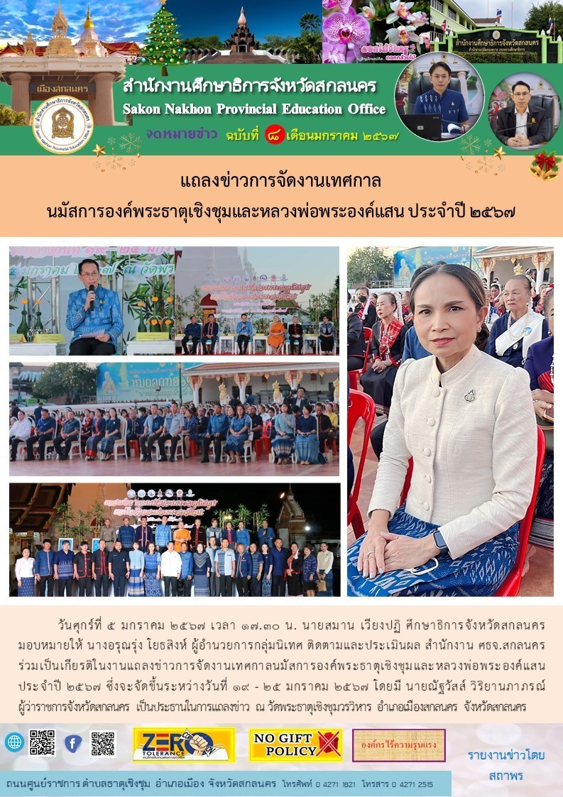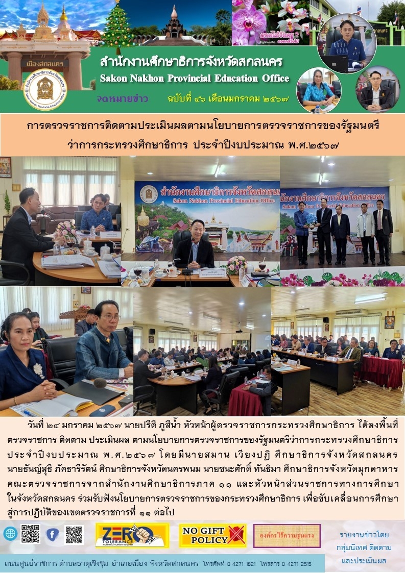 ภายใต้โครงการขับเคลื่อนการยกระดับคุณภาพการศึกษาและประสิทธิภาพการศึกษาจังหวัดสกลนคร โดยผ่านกลไก กศจ.สกลนคร