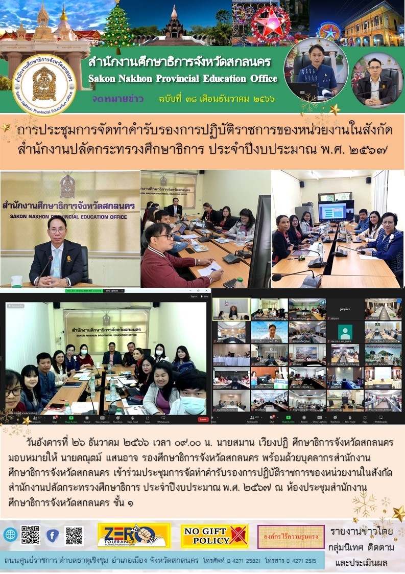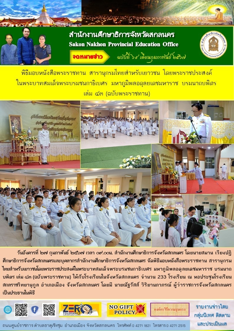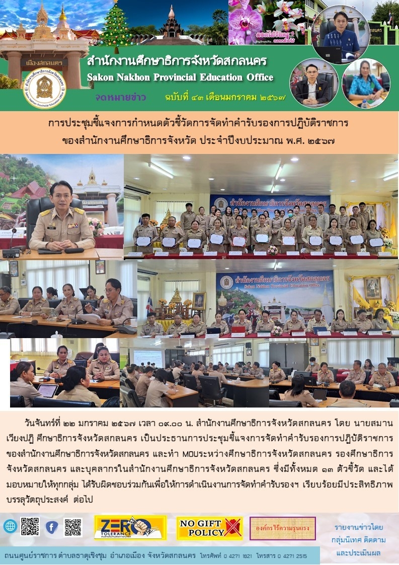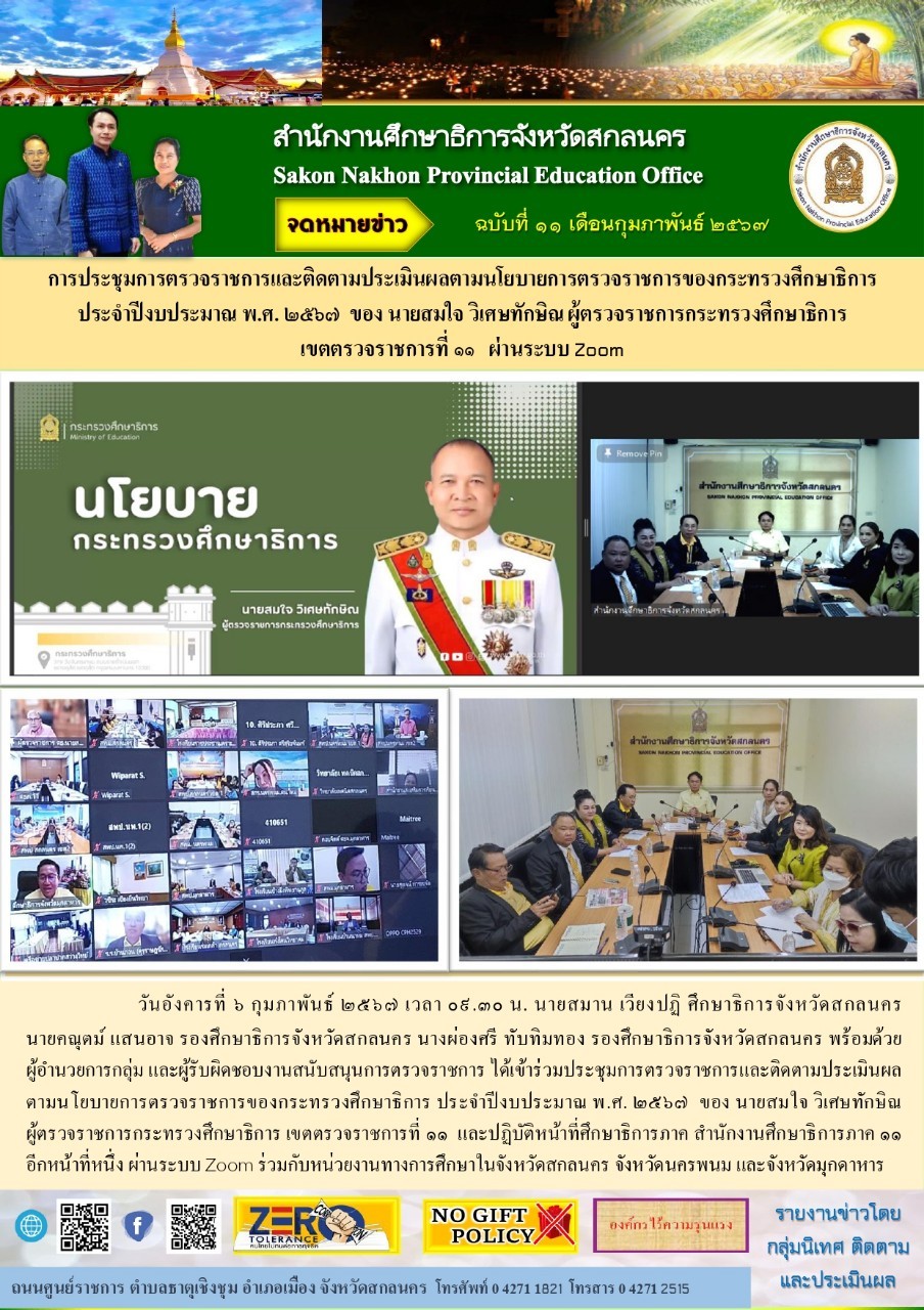 ภายใต้โครงการขับเคลื่อนการยกระดับคุณภาพการศึกษาและประสิทธิภาพการศึกษาจังหวัดสกลนคร โดยผ่านกลไก กศจ.สกลนคร
