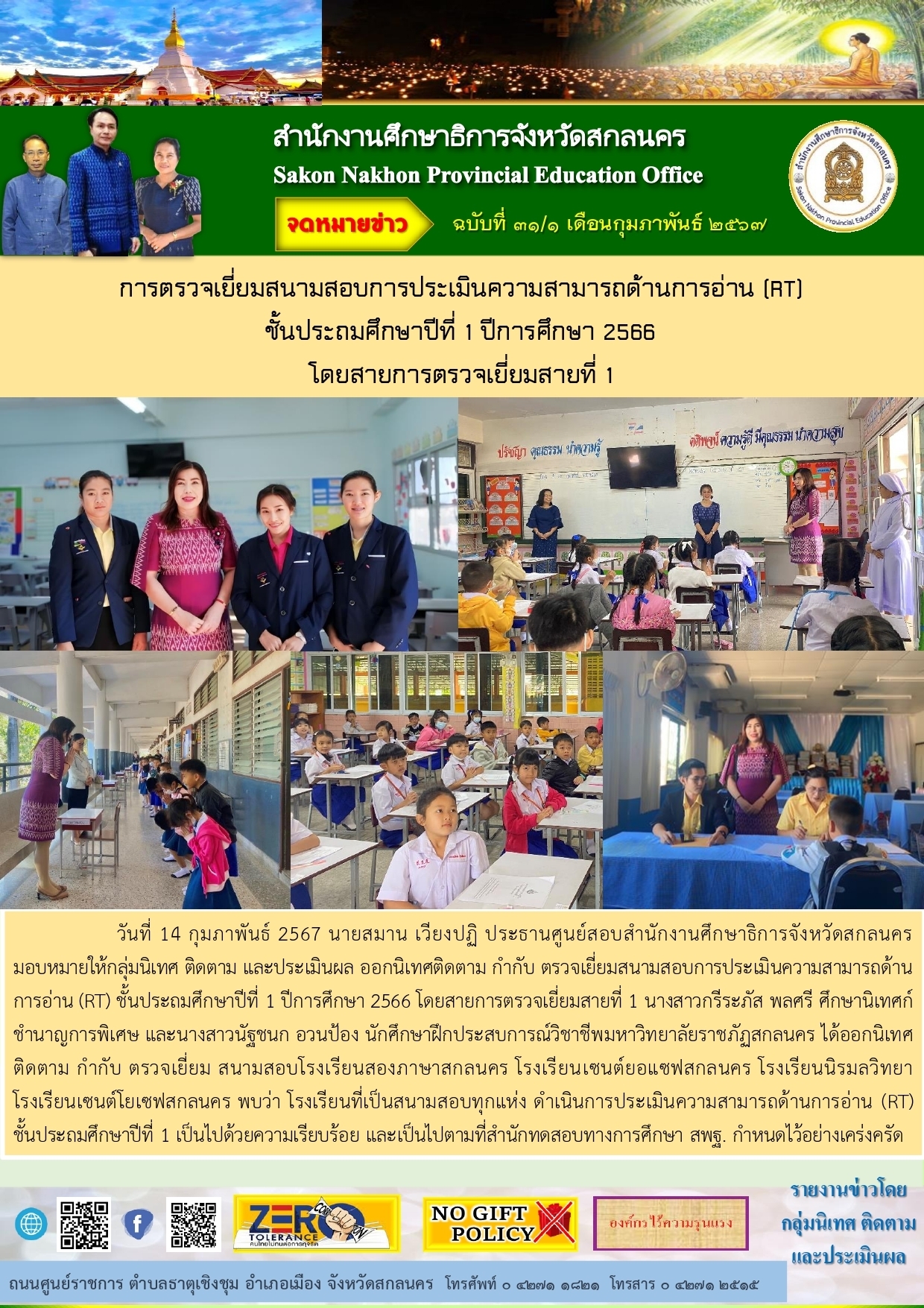 การลงพื้นที่เพื่อกำกับ ติดตาม ประเมินผลการดำเนินงานตามแผนพัฒนาการศึกษาจังหวัดสกลนคร