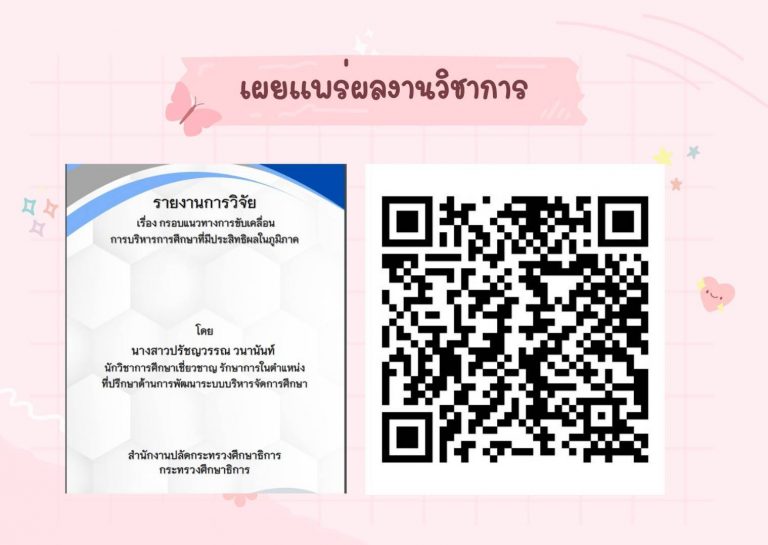 เผยแพร่ประชาสัมพันธ์ผลงาน นวัตกรรมทางการศึกษา เพื่อเป็นแนวทางการขับเคลื่อนการบริหารการศึกษา